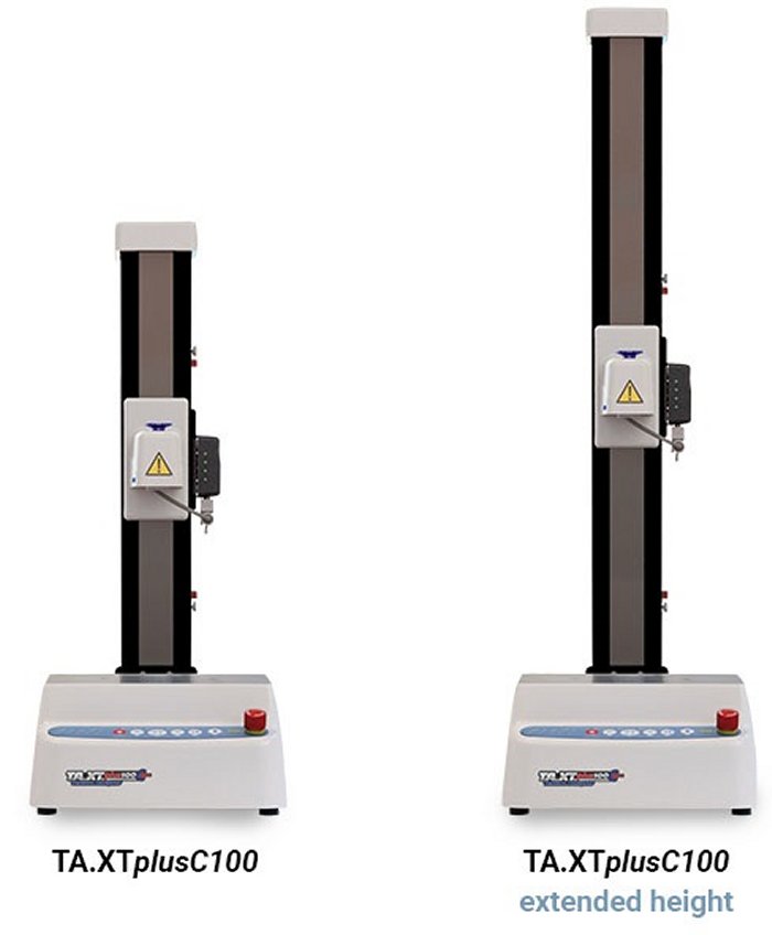The stiffer structure enables higher force applications – half micron at 20mm/s. The extended height model provides even more testing distance for high force extensional applications. With the TA.XTplusC100you get more capacity for the same laboratory bench space (footprint).