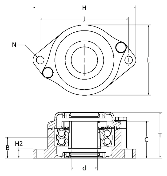 This 2-bolt flanged housing is designed for use in limited space and when there is an existing 2-hole application.