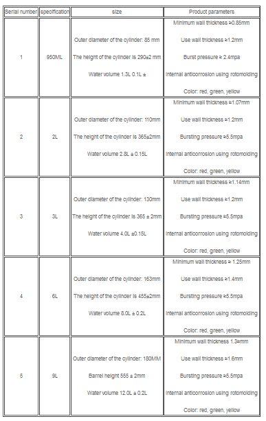 Outer diameter of the cylinder: 85 mm. The height of the cylinder is 290±2 mm. Water volume 1.3L 0.1L ±.
