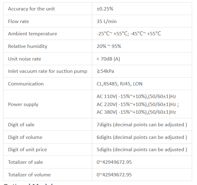 - Printer, IC card, ID card, Hose retractor, communication for FMS, vapor recovery, break away,swivel, emergency stop, LED light,ect
