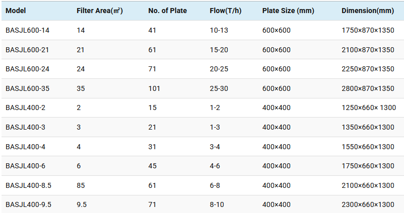 - The plate and frame design is adopted, and different filter media are used according to different filter requirements to achieve the best filter performance.