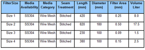 - 35 ~ 800 micron range, absolute rating.