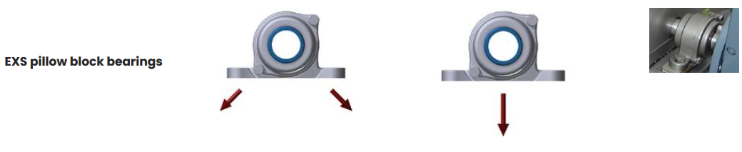 Extreme Bearing units are intended for loads acting vertically towards the base plate support. Therefore, if the bearing housing is supported over its entire base, loads are limited only by the load limits of the bearing insert. If loads acting in other directions occur or if the housing is not supported over its entire base area, make sure that the magnitude of the load is permissible for the bolt assembly attached to the machine frame.