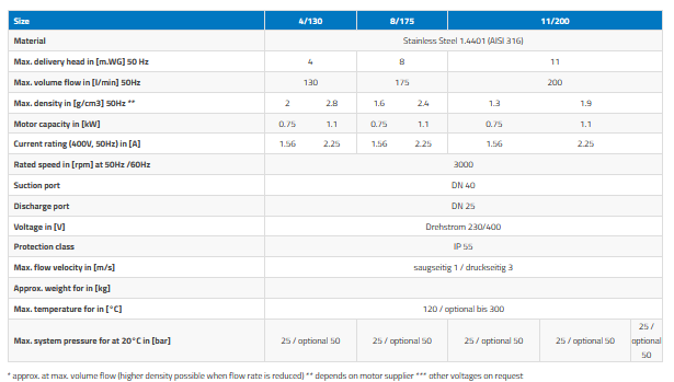 Without shaft seal. Robust and casted casing. CARTRIDGE UNIT for fast and easy maintenance. Temperature up to 120°C (higher temperatures are possible). Close coupled, single stage, back-pullout-design. Universal DIN/ANSI connection. Suction port DN40. Discharge port DN25.
