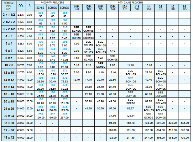 - Weights for Concentric and Eccentric Reducers are the same.