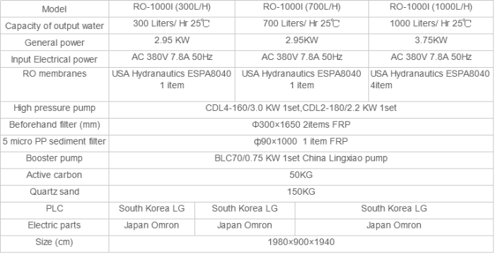 Our RO machines are designed to be controlled by imported PLC automatically, with various protecting functions and high efficiency and safety guard. The reverse osmosis membranes are US brand Hydranautics. Except RO membrane treatment, other common filters also included in the machine as complete one, that is quartz sand filter, to remove remaining suspended particles and unsettled floc, activated carbon filter, to trap organic chemicals and chlorine, improve the taste and odor; PP sediment filter, to trap particles of 1–5 µm diameter, including rust and calcium carbonate. All these water purifying steps can make sure the output water are 100% clean and safe. It is widely used in food stuff, pharmaceutical, chemical industry, electronic industry for terminal process. The output capacity ranges from 300L/H to 50,000L/H.