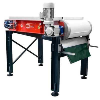 This extraordinarily strong as well as compact and modular magnetic separator MV-R consists of a pair of rollers. The drive roller is magnetic (with a rotational speed control according to the character of cleaned material and working needs) and the driven one is non-magnetic. This roller pair is mutually connected to each other with a very thin, but extremely sturdy polyurethane belt (which is also suitable for food applications, antistatic and has increased temperature and mineral oil resistance).