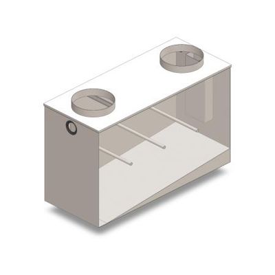 Sludge trap / Grease interceptor. Made of stainless steel AISI 304l. Pretreatment apparatus intended to retain and accumulate alimentary fat contained in household water. Pretreatment of household water from kitchens and restaurants.