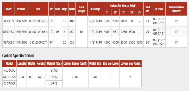 Red Lion® CSS Series Sump Pumps are available in 1/3, 1/2, and 3/4 hp models to move up to 4500 gph in residential applications. They feature a compact footprint, an energy-efficient PSC motor to minimize electricity costs, and a number of rugged features that make them ideal for the most challenging applications.