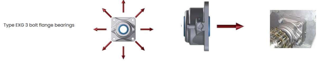 In addition to standard design EXG flanged housings, variants are also available. include housings with centring recesses and grease escape holes.