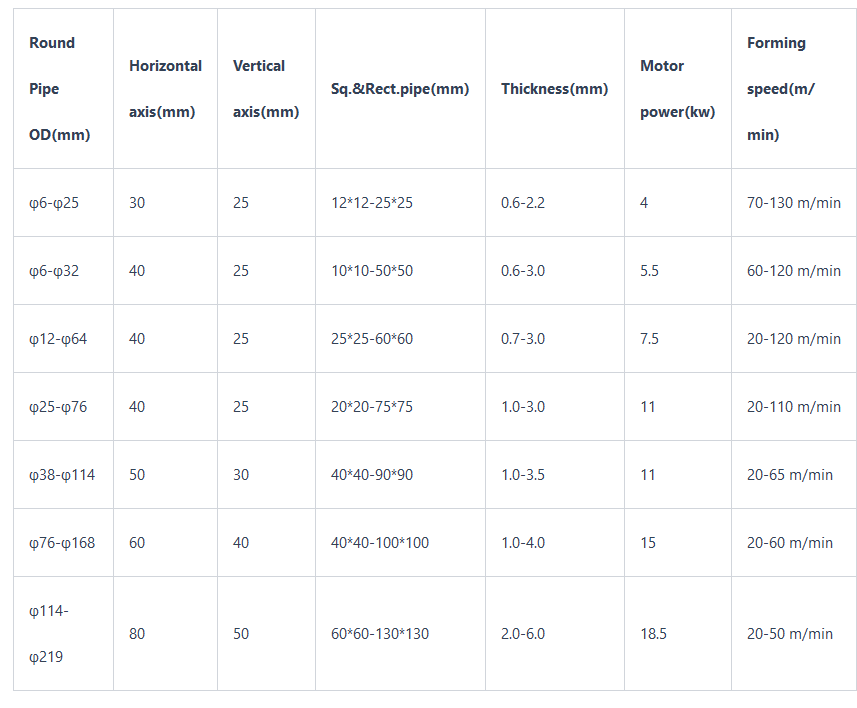The main function of the stainless steel tube mill making machine is to produce various stainless steel decorative pipes through roll forming and welding processes. The main processes of the stainless steel tube mill are: decoiling, roll forming, welding, straightening, sizing, cutting, etc.