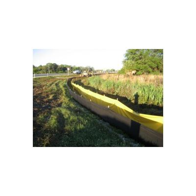 Staked Barriers are continuous panels of impervious vinyl-polyester fabric that, installed correctly, can contain stormwater runoff or re-direct it to proper channels or retention areas. On-land installation is similar to that of silt fence, with 8 inches below grade and 36 inches above grade attached to stakes. Staked Barriers can also be installed in up to 18 inches of water.