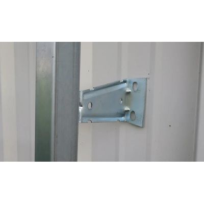 The specially designed Stand-Off Brackets can be mounted at any position along the box beam uprights for increased flexibility of installation. Brackets are fastened with a special locking device and a 3/8" plated bolt - NO DRILLING IS REQUIRED. The Stand-Off Bracket assembly assures the correct distance of 7" from wall surfaces to the center line of the rungs.