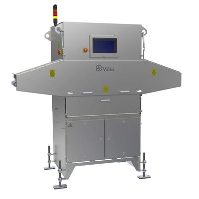 The Valka standalone X-ray is designed for detection bones in fish fillets or portions with automatic sorting of defected pieces. The system can locate bones down to 0,2 mm in size. The system can reject the pieces found with bones and report the position on a image. The X-ray system uses low energy X-ray technology which gives the highest contrast possible and more reliable detection of small bones than with conventional technology.