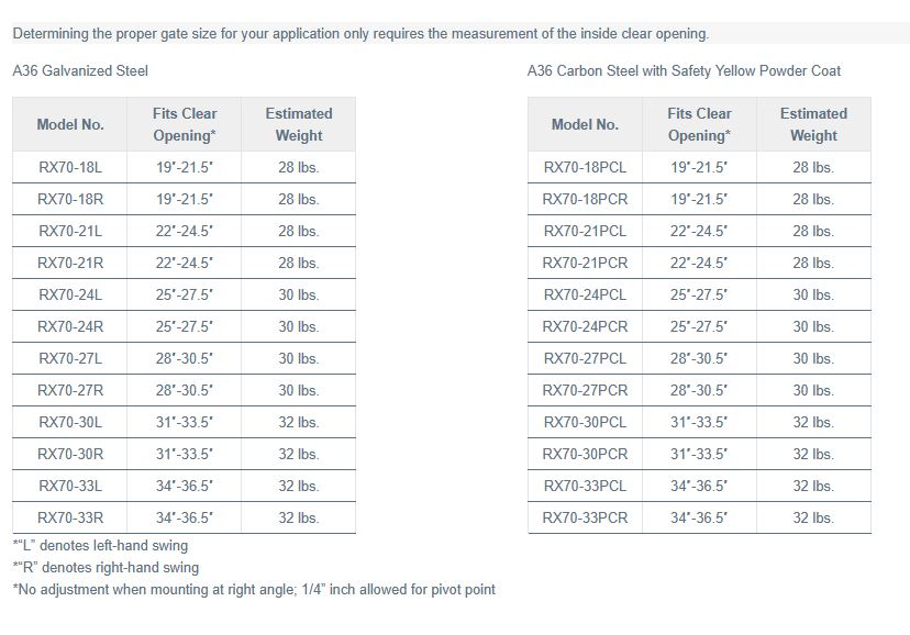 The RX Series self-closing safety gate can be used effectively as an access control safety gate or a stairway gate. The R and RX Series self-closing safety gates were originally developed as metal alternatives to plastic swing gates.