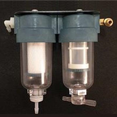 The Standard Dual Filter provides double the filtration potential and the ability to use different types of filter media (tri-compound coalescing, charcoal, and a finer micron filter). It also gives you two stages of filtering, allowing the first to be used, for example, as a water separator, and the second as a media filter.