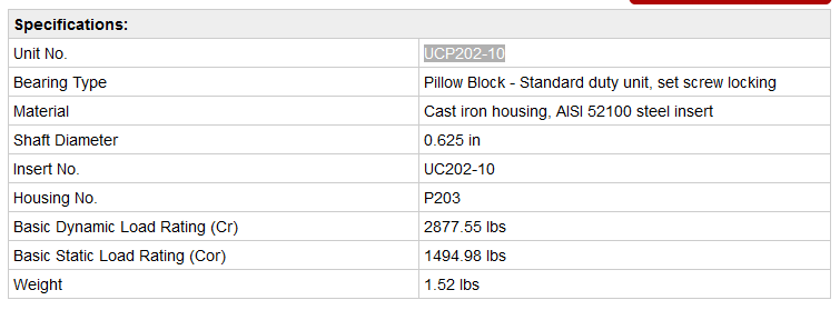 ABT - Model UCP202-10 -Standard Duty, Set Screw Locking Type Pillow Block