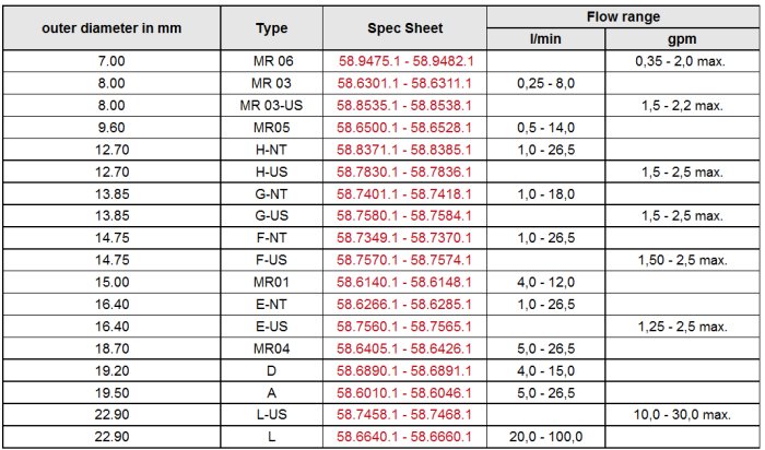 Many other flow assembly options and sizes are available. Also additional flow classes are possible.