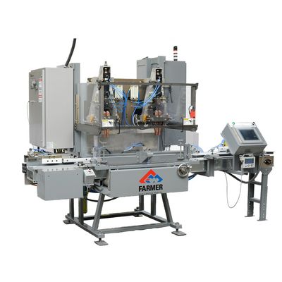 All of our welders incorporate Farmer’s unique weld toggle assembly. Industry proven for over 25 year, the weld head design allows greater force application at the weld point without compromising space. In addition, our separate second squeeze application after the weld forges the molten lead to an optimum predetermined displacement within the punched hole in the container.