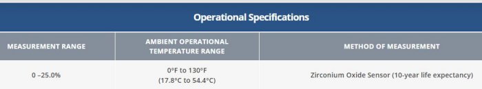 - Long life zirconium oxide sensor: 10 year life expectancy , 2 year warranty.