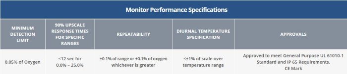 - Repeatability: +/- 0.1% of range or +/- 0.1% of oxygen, whichever is greater.
