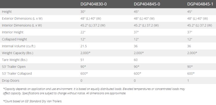 - 600 collapsed containers fit in a 53' dry van trailer.