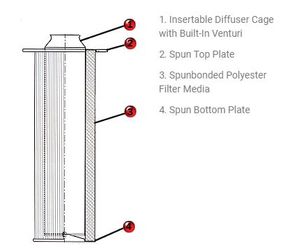 The filter cartridge comprises of a cylindrical star pleated polyester media, which is cast in polyurethane on both ends.
