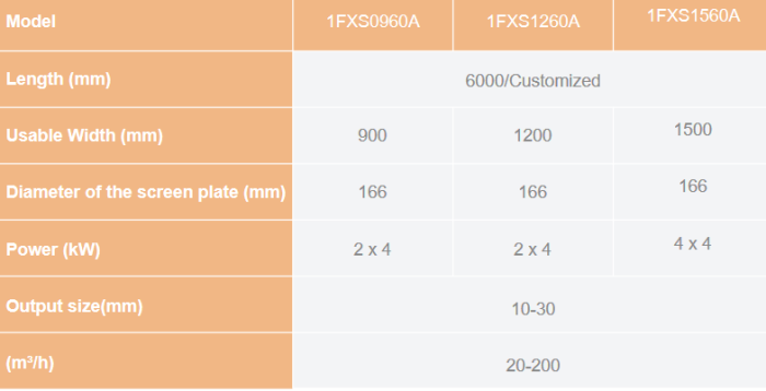 When in operation, the material moves in a line towards the discharging point. The material smaller than the screen hole is separated out then conveyed to the collecting point. The material larger than the screen hole will be conveyed to the final product storage area.