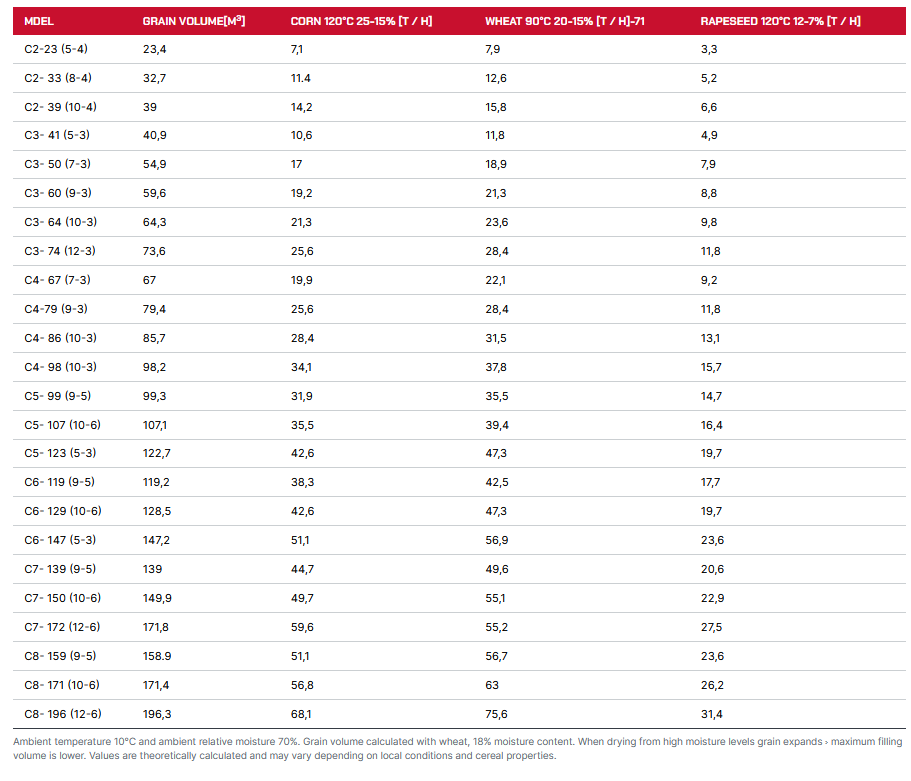 The galvanized material of C series dryers designed and manufactured in Finland ensures long service life. The versatile choice of dryer heating sources includes oil burners and direct gas burners.