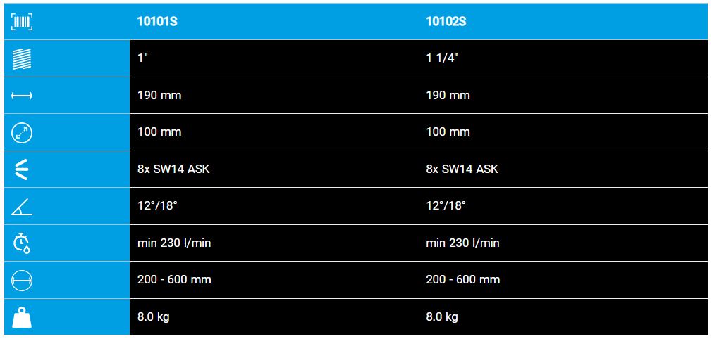 - Rear water jet angles 12° and 18°