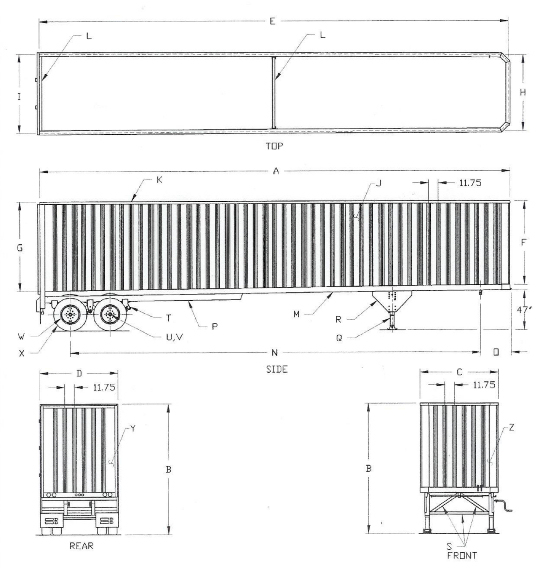 - KING PIN/LAST AXLE: 39’ - 47’
