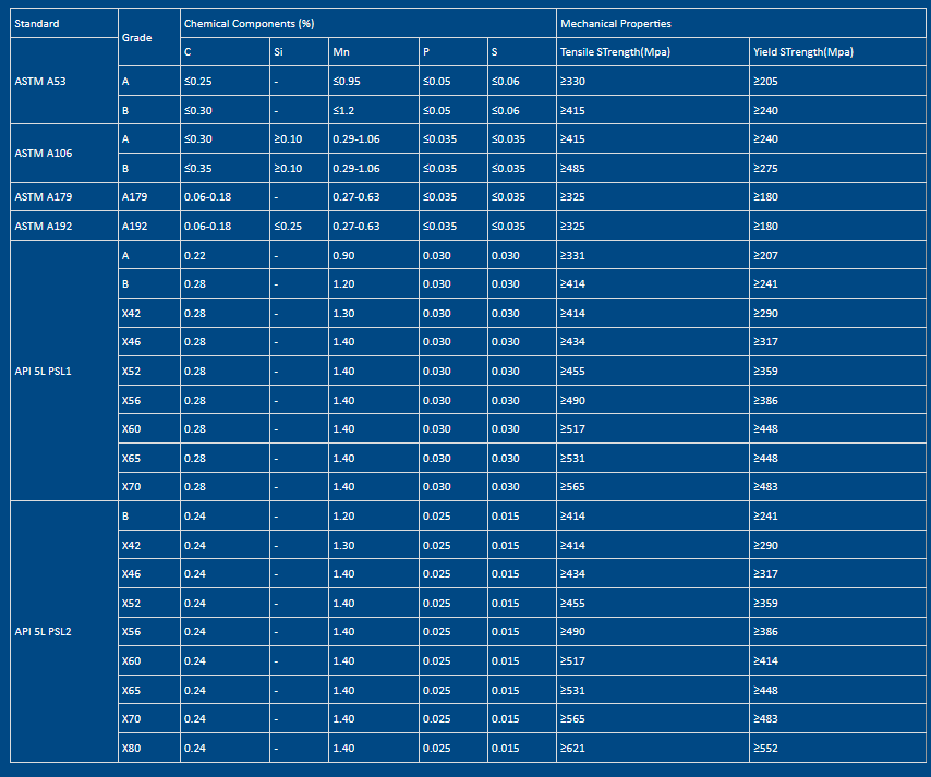 Specifications Range: Out Diameter: ¼" to 26". Wall Thickness: 20, 30, 40, STD, XH, 80, 100, 120, 140, 160, XXH. Length: 3.0m-18m.