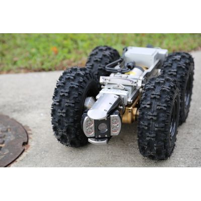 The CUES SPR II (Steerable Pipe Ranger II) is a versatile robotic camera transporter designed to traverse silt, mud and debris commonly found in storm and sanitary sewers. The SPR II is designed with single-point wheel removal to facilitate speedy configuration changes for various pipe diameters and conditions. Optional high traction tires are available for extreme slippery conditions.
