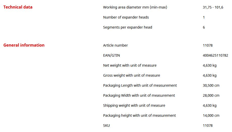 - Expansions can be performed even in confined spaces thanks to the ratchet drive The step expander head allows expanding six different pipe dimensions with only one tool Precise adaptation to most pipe dimensions and pipe materials thanks to continuous adjustment of the capillary gap.