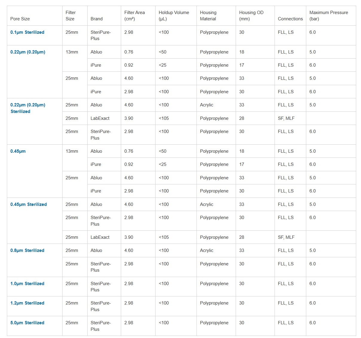 50mm Disc Capsule, Glass Fiber 5 um Prefilter over 0.20um PES Final Filter, 1/8" Barb Inlet/Outlet.