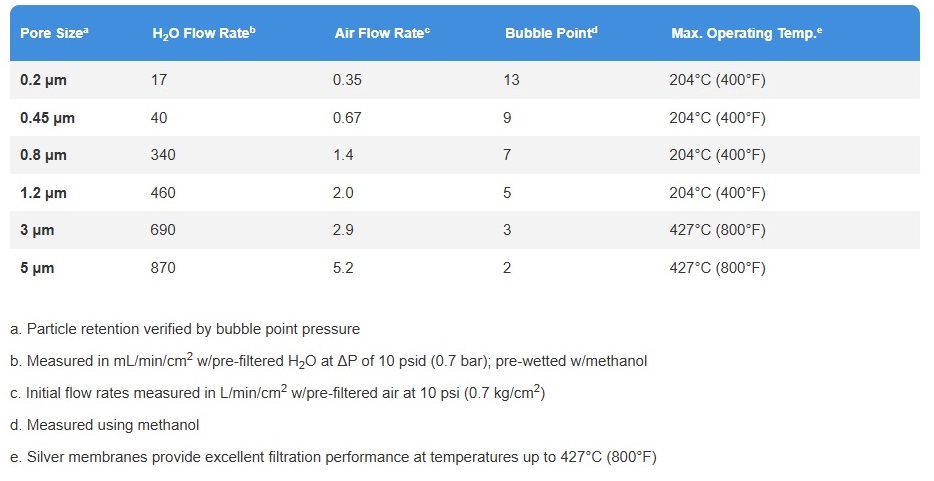 Pure metallic silver (99.97% pure silver); hydrophilic, inorganic, membrane filter; pore rating of 0.2 microns and a diameter of 13 mm.Pure metallic silver (99.97% pure silver); hydrophilic, inorganic, membrane filter; pore rating of 0.2 microns and a diameter of 13 mm.