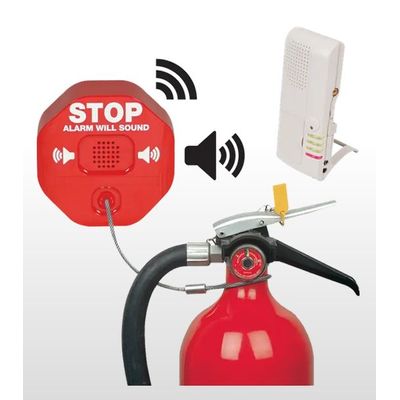 This wireless fire extinguisher alarm is highly effective and helps stop theft, vandalism or misuse of fire extinguishers. If the protected fire extinguisher is moved from its normal location, the device emits a piercing alarm and sends a signal to an STI receiver up to 1000 feet (line of sight). This wireless fire extinguisher alarm gives many options such as the STI-6200WIR, and STI-V6200WIR4.