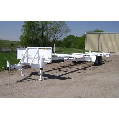 The LSP 3040 pipe trailer is a robust solution for heavy-duty transport needs, boasting a 20,000-pound gross vehicle weight rating and accommodating stick pipe lengths of up to 40 feet. With a manageable empty weight of 6,200 pounds, it offers both strength and efficiency. Equipped with a reliable 10,000-pound electric brake running gear and sturdy 17.5 x 6.75 8 bolt white mod wheels, it ensures stability on the road. Featuring a durable frame with 10-inch channel main frame and various extensions, along with safety features like breakaway battery system and warning decals, it meets safety standards with ease. Finished with PPG industrial urethane paint in multiple colors, it combines functionality with a professional appearance.