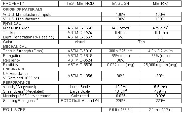 - Maximum permissible velocity and shear stress has been obtained through vegetated testing programs featuring specific soil types, vegetation classes, flow conditions, and failure criteria. These conditions may not be relevant to every project nor are they replicated by other manufacturers. Please contact Propex for further information.