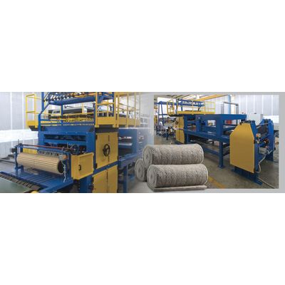 The stitched mattresses production line is designed to treat the rock wool felts produced on the main line. The stitched mattresses consist of a rock wool felt stitched on a support. They are mainly used for the insulation of cylindrical surfaces (pipes, ducts, tanks), conical and in general for wide surfaces of irregular form. The production of stitched mattresses foresees the application of a support as metallic mesh (zinc-coated or inox) or more rarely aluminium, paper or glass tissue.