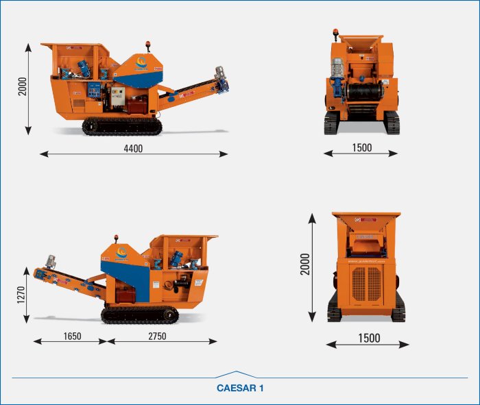 The smallest dimensions for the highest performances. They represent a real revolution for small yards with lack of space. The stone crushers of the Caesar series, designed for inert’s grinding, are indicated for the use in small yards with lack of space. They require one operator only. Equipped by tracks and radio remote control, they directly reutilize the grinded material, avoiding transport costs. They reduce expenses thanks to low operating costs, totally avoiding the landfill.