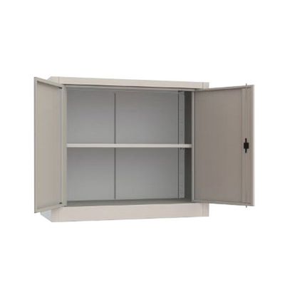 Storage cabinet with 2 hinged epoxy-painted steel doors.