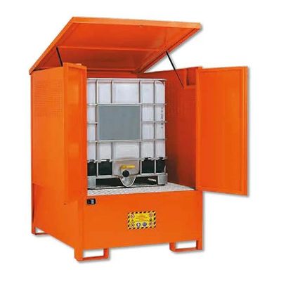 Sall designs and manufactures IBC storage cabinets for people and environmental risks and dangers prevention that can be caused by accidental spills of hazardous, polluting, flammable and corrosive liquids. IBCs can in fact be damaged by unwise forklift handling and can lead to possible spills also during filling, transfer or emptying operations, therefore it is crucial to properly store IBC.
