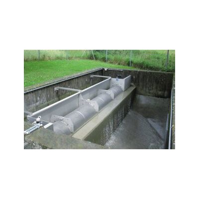 RoK 1 screens are horizontally installed directly behind the downstream side of overflow weirs. A screw flight is mounted on a half cylinder of perforated plate. As the stormwater flows through the horizontal perforated half-pipe of the screen trough the solids are retained. A screw, with a brush attached on ist flights, rotates within the semi-circular screen trough. It cleans the screen and pushes the screenings gently towards the end of the trough. At the end of the trough, the screenings are returned into the sewer and carried to the wastewater treatment plant. Alternatively, the screenings are removed from the plant with a pump for further disposal. During storm conditions the screen is automatically started and then works fully automatically.