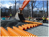 The StormTech SC-160LP Chamber was developed for infiltration and detention in shallow cover applications. Only 14" (350mm) required from top of chamber to bottom of pavement and only 12" (300mm) tall. Installs toe to toe – no additional spacing between rows.