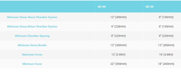 Each StormChamber provides 75ft ³ (2.12 m3) of internal storage capacity or 115ft3 (3.26 m3) of installed storage capacity with the minimum stone requirement . This is significantly more storage per chamber than similar size chambers, which results in need fewer chambers required and a smaller footprint.