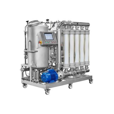 The Crossflow filtration is a cross-flow filtration process and is also called tangential flow filtration. Thereby, the medium to be filtered is forced with pressure through exactly defined pores of a mem-brane. A high overflow velocity in the module, however, prevents the clogging of the pores by keeping the solids suspended. The size of the pores decides whether a micro or ultra filtration is present. During the filtration process, the concentration of the retained solids increases within the system which can lead for different membrane types to a clogging resp. blocking of the membrane. Blocking or clogging also arises by the formation of a gel layer (colloids). For the filtration of wine, fruit juice or vinegar for example, an especially for this purpose developed hollow fibre module made of polyethersulphone has proved itself.