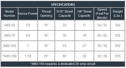 AMS-50 / AMS-75 / AMS-100 / AMS-150. 11 -65 Sheet Capacity. Our heavy duty office paper shredders are available in 1/2 to 1-1/2 horsepower models. They look identical but each successive model has more power, a larger drive and greater shredding capacity. All components, including shafts, cutters and bearings, are sized for the largest horsepower in the series.