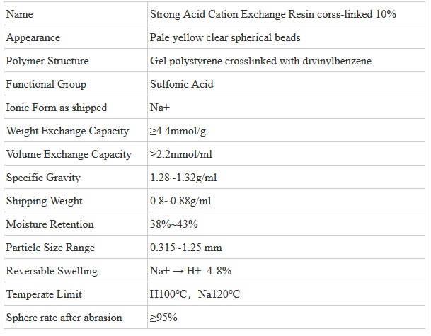 Hailan - Model 001X10 -Strong Acid Cation Exchange Resin Cross-Linked 10%