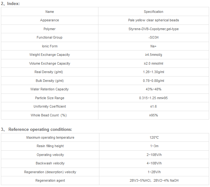 001×8 is a polystyrene matrix of gel type strong acid cation exchange resin containing sulfuric acid, which is equivalent to solid sulfuric acid. Mainly used for water treatment industry.